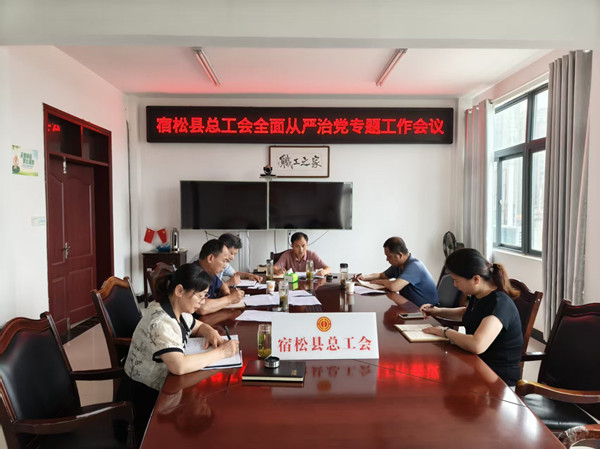 6月20日下午,宿松县总工会召开全面从严治党专题工作会议,深入学习了《党委(党组)落实全面从严治党主体责任规定》,专题研究部署2025年全面从严治党工作,审议并通过了《宿松县总工会2025年全面从严治党工作要点》,进一步明确目标任务,压实主体责任,为工会工作高质量发展提供坚强政治保障。县总工会党组书记、副主席孙中和主持会议,全体党组成员参加会议。