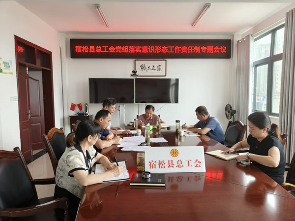 为深入贯彻落实意识形态工作责任制,切实加强党对意识形态工作的全面领导,6月20日,宿松县总工会党组召开落实意识形态工作责任制专题会议,专题研究部署意识形态领域重点工作。会议由党组书记、副主席孙中和主持,全体党组成员参加。