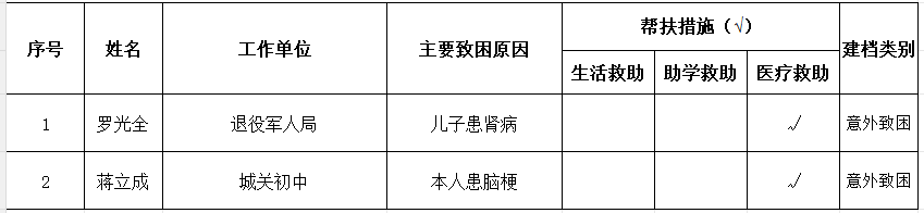 根据《安徽省工会困难职工建档帮扶实施细则》规定,经职工本人申请、基层工会初审、帮扶中心审核、县总工会主席办公会研究决定,拟对以下2名困难职工进行建档帮扶,现将名单进行公示,公示期为2026年2月5日--2026年2月11日,接受社会监督。
