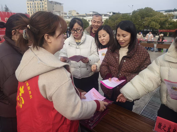 活动现场,人员涌动,求职者络绎不绝,咨询着和自己相匹适配的工作岗位。此次招聘会汇集20余家本县重点企业,提供了涵盖电子、家政、纺织等多个行业1000余个就业岗位,契合女性就近就业的求职需求。活动现场还设立了政策咨询服务台,县总工会、县人社局、县妇联工作人员现场为求职女性提供就业指导、劳动法律咨询、权益保障等“一站式”服务,发放《女职工劳动保护特别规定》《工会法》等宣传资料500余份,帮助女性求职者了解政策、维护权益、增强信心。
