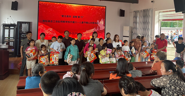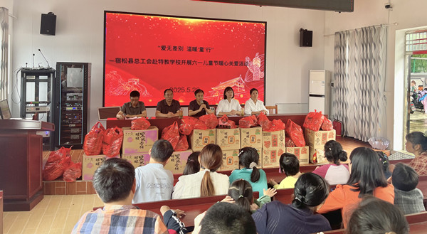 5月28日,宿松县总工会党组书记、副主席孙中和、党组成员、副主席陈福生等一行走进县特殊教育学校开展“爱无差别 温暖‘童’行”六一儿童暖心关爱活动,为特殊儿童送上节日的慰问和祝福。
