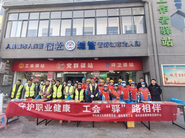 11月25日,宿松县总工会联合县卫健委、县疾控中心在宿松城管(工会驿站)开展“守护职业健康 工会‘驿’路相伴”主题科普宣传活动,为20余名坚守岗位的环卫工人送上免费健康检测与专业指导,让户外劳动者在忙碌之余感受到“家”的温暖。