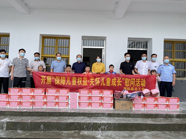6月1日,宿松县总工会联合县委编办、县烟草局到北浴乡迎宾村迎宾小学,开展“保障儿童权益·关怀儿童成长”主题志愿服务活动,慰问留守儿童,为孩子们送上了牛奶、体育用品等节日礼物,与在校学生共庆“六一”儿童节。