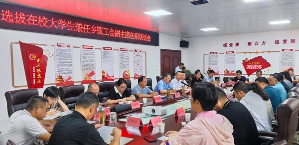 7月11日,选拔在校大学生兼任乡镇工会副主席任职谈话会在县城召开,县人大常委会副主任、县总工会主席石锦华出席会议并讲话,县总工会负责人和乡镇党委副书记出席会议,即将兼任乡镇工会副主席的大学生参加会议。会议宣布了各乡镇工会副主席任职安排,石锦华对兼职大学生们进行了岗前任职谈话。