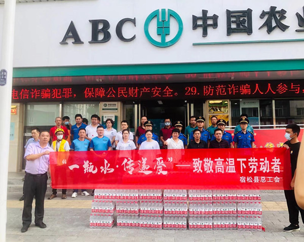 8月25日,宿松县总工会组织开展“一瓶水·传递爱”—致敬高温下劳动者活动,现场为广大户外劳动者免费派发矿泉水,为他们送去烈日里的一抹清凉。