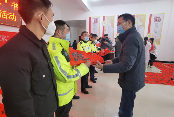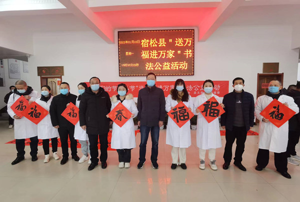 送万福进万家,墨瀚飘香人心暖。为深入学习贯彻习近平新时代中国特色社会主义思想和党的二十大精神,弘扬中华传统优秀文化,丰富职工精神文化生活,营造欢乐祥和的节日氛围。春节前夕,1月16日,宿松县总工会、宿松县文联、宿松县卫健委联合组织开展“送万福 进万家”书法公益活动。宿松县人大常委会副主任、宿松县总工会主席石锦华出席活动并通过向一线职工送春联、送“福”字的方式向全县广大职工恭贺新春!宿松县总工会、宿松县文联、宿松县卫健委负责同志参加活动,交警、环卫工人、医务工作者和新就业形态劳动者代表参加活动。