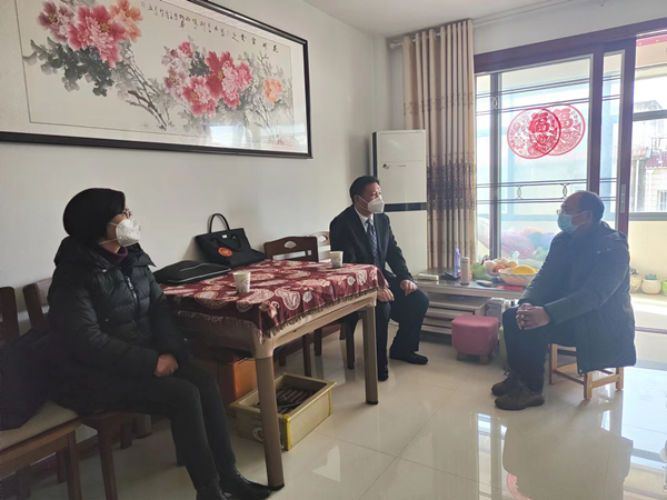 谢长兵到农业农村局走访慰问,与困难职工促膝谈心,送上新年的祝福,向他们传递党和政府的温暖及关怀,鼓励他们振奋精神,战胜困难。
