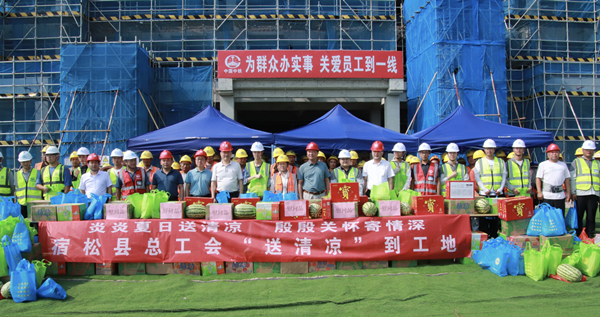 在宿松县第三自来水厂及配套管网建设工程项目现场,施工如火如荼,许晓峰详细了解了项目的概况、工程进度、工人们当前工作及生活状况,充分肯定了一线工人的敬业精神和高度责任感,对他们为宿松发展作出的贡献表示感谢,并向他们送上慰问物资。他还殷切叮嘱施工单位要重视高温季节的防暑降温工作,合理安排作息时间,严格遵守各项安全要求,为我县基础设施建设提升作出更大贡献。