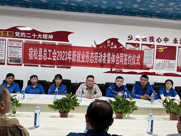 为进一步推进和落实我县新就业形态劳动者权益保障工作,促进全县快递行业持续健康发展,构建和谐劳动关系,11月2日,宿松县总工会在诚信中通商务有限公司举行新就业形态劳动者集体合同签约仪式。县总工会党组成员、副主席胡健武,县交通局党组成员、副局长吴穹出席仪式。